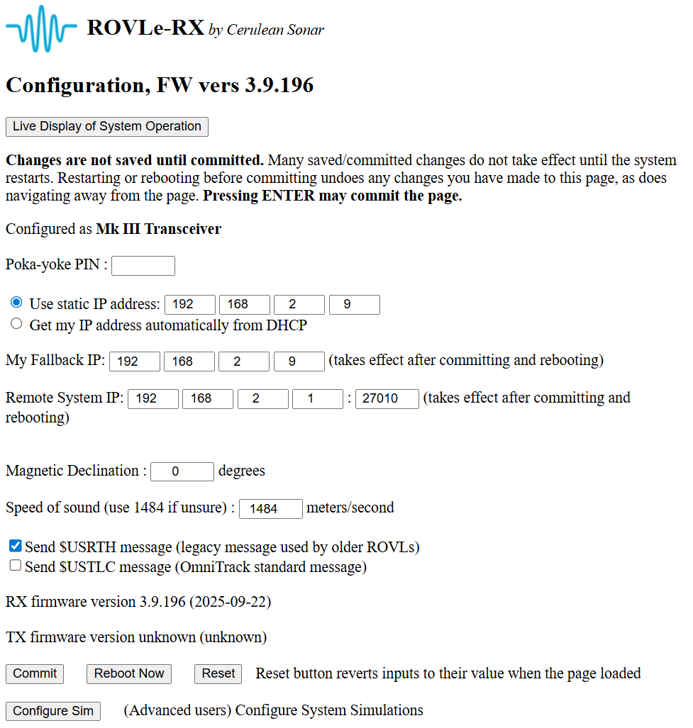 Every parameter you can set on this page is "sticky". Once committed, the values are saved in non-volatile memory and are in effect until changed.