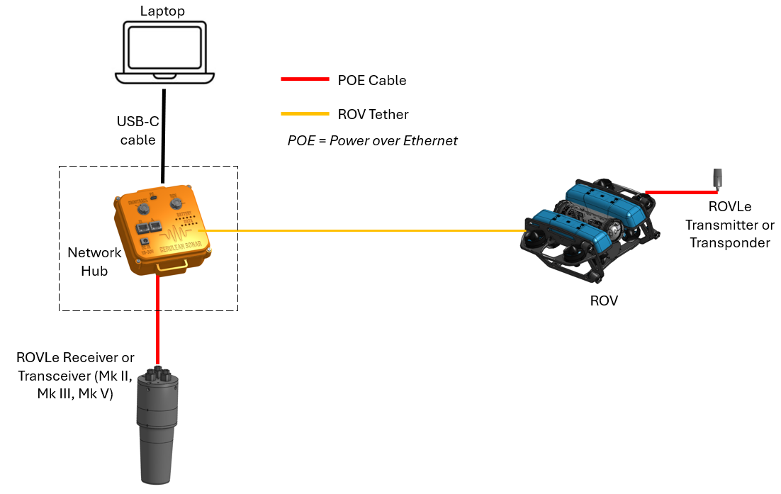 Then you need to provide an Ethernet power injection and a network switch to connect the transceiver / receiver to the ROV Ethernet.&#x20;