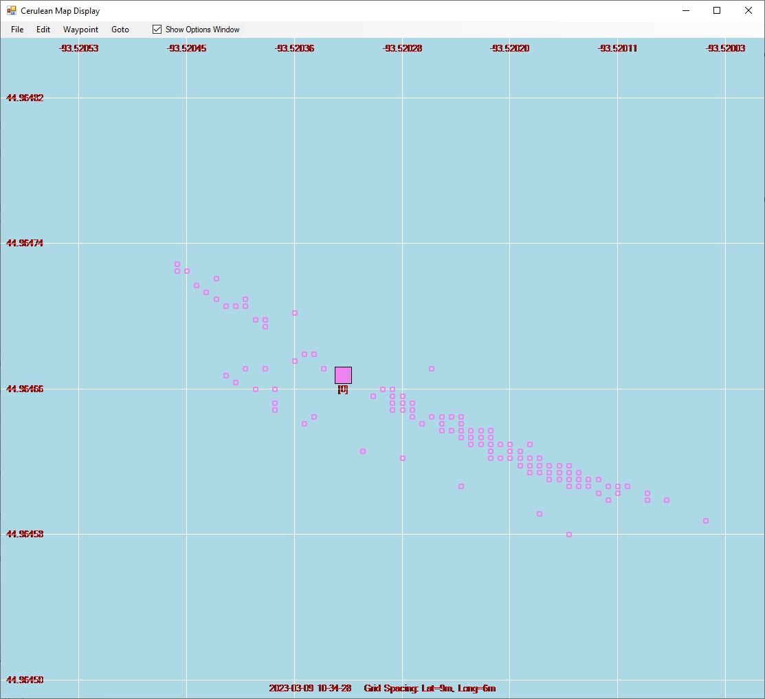 You can see there are two separate bands of positions. Initially, we cut a hole right at 300 meters and took a few measurements. However, the total range allowed is hard-limited to 300 meters (to prevent interference from adjacent systems) and was affecting another aspect of this test, so we moved 5 meters closer to the transponder.