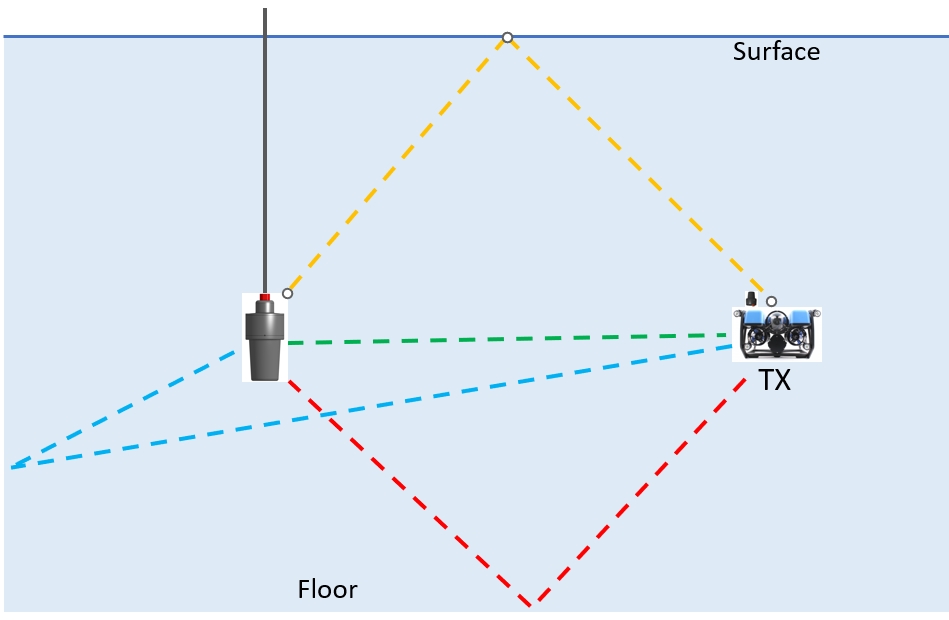Multiple signal paths are created when a sonar signal reflects off one or more interfaces, and the reflected signal(s) combine with the direct-path signal causing constructive and destructive interference. The interference can create changes in the amplitude of the combined signal, and can also create changes in the phase of the received signal, when compared with the direct-only signal. Additionally, the combined signal may appear to arrive from a direction different than the original ping, which will cause location errors.
