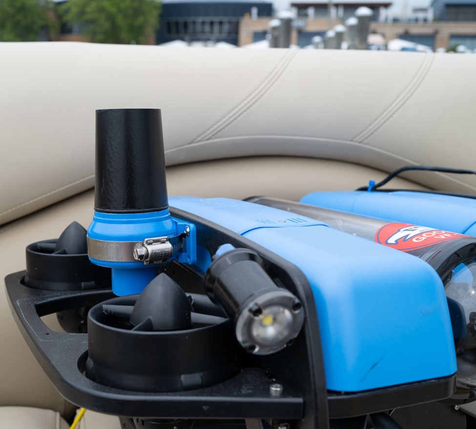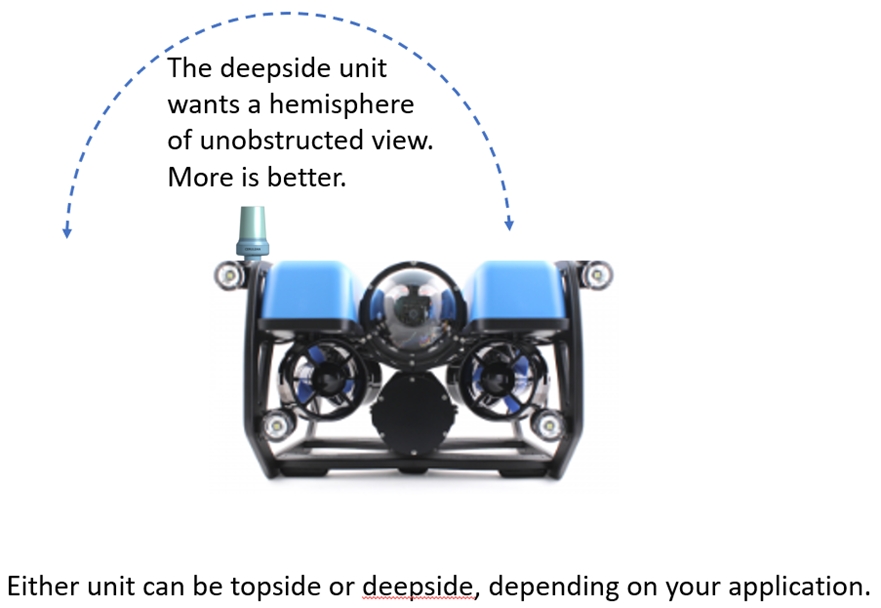 Either the transmitter of the receiver can be mounted on the ROV or deepside unit. Typically, the transmitter is on the deepside.