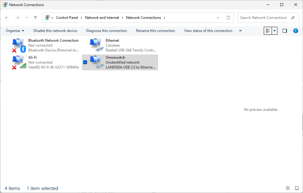 **Make sure** no other connected adapters are on the 192.168.2.X subnet (or the different subnet you elected to use). If you have previously connected a Blue Robotics Fathom-X / FXTI ROV tether interface box, you likely set its IP address to the 192.168.2.X subnet. It's OK to leave it set with that address, but it **CANNOT BE CONNECTED** to your PC or the PC will become confused as to which device to communicate with.&#x20;