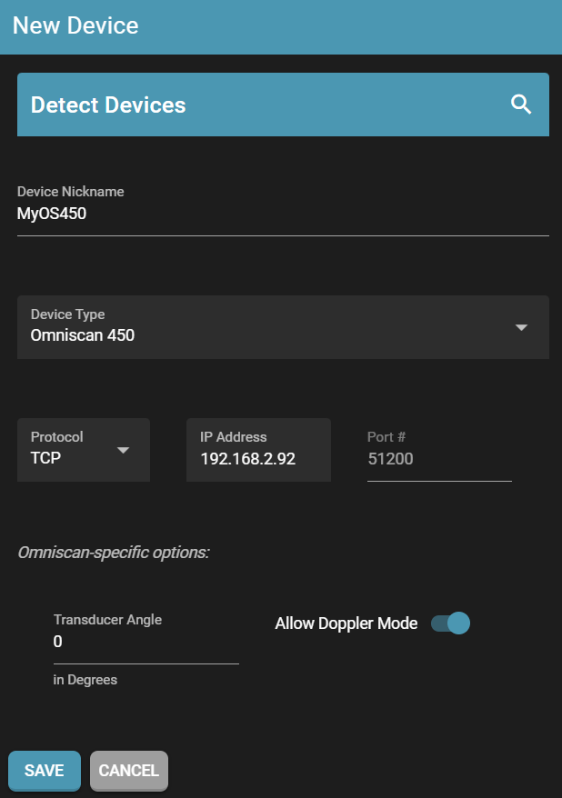 1. Add the Omniscan to the Devices list: